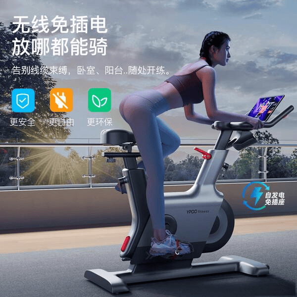 易跑动感单车配备自发电系统,用户只需用力踩几秒钟,设备就能立即启动供电,无需插座或电线,十分方便。它还能将运动产生的动能转换为电能,储存起来供设备使用,减少能源浪费。自发电设计还配备应急接口和休眠模式,确保在没有外部电源情况下依然能正常运行。