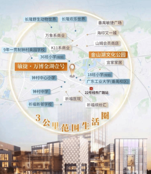 在现代都市生活中,时间是最宝贵的资源。敏捷万博金湖壹号深谙此道,在项目选址上充分考虑了轨道交通的便捷性。距离已开通的地铁22号线米,这一距离被公认为“黄金步行距离”。实测步行时间仅需12至15分钟,既避免了紧贴地铁站的嘈杂与拥挤,又确保了日常通勤的高效与便捷。22号线作为广州地铁网络中的“快线公里,是连接番禺与市中心的大动脉。搭乘22号线站即可直达番禺广场,在这里可以无缝换乘3号线号线作为广州最繁忙但也最核心的线路,贯穿天河路商圈、珠江新城、广州塔等地标,是通往城市心脏的必经之路。而18号线则是另一条高速大动脉,直接连接南沙自贸区与冼村,进一步缩短了与城市副中心的时空距离。通过这两条线路的换乘,从业主家门口出发,40分钟内即可通达珠江新城、琶洲会展中心等核心城区。这意味着,无论是在天河上班的白领,还是在琶洲参展的商务人士,都能轻松实现职住平衡,将原本耗费在路上的时间转化为陪伴家人或自我提升的宝贵时光。