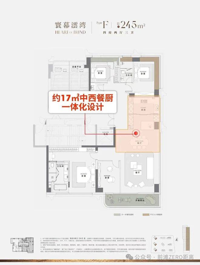超过60平米的开放式空间(客厅、餐厅、X空间、阳台一体化),功能灵活,可满足大型派对或家庭休闲,尺度感直接媲美原来350㎡的滨江户型。
