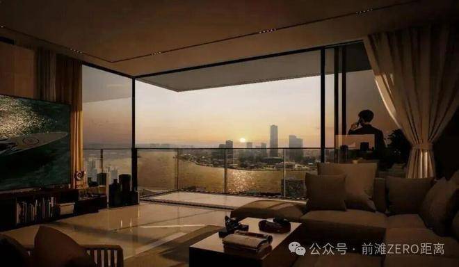 设计背书由问鼎国际大奖的著名设计师吴滨操刀,延续其“汤臣一品5亿顶复”的“摩登东方”理念。以黄浦江为灵感,营造“阅尽千帆后的宁静与松弛感”。通过8.5米南向宽厅、270°环幕玻璃、无冗余装饰的减法美学,让空间如江面般舒展,视野极度开阔。