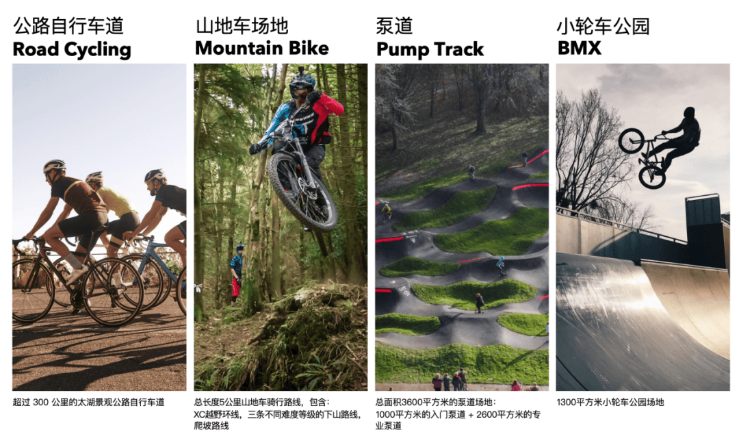 引进融合咖啡馆、传统中餐与复古意大利自行车主题餐厅的复合业态,构建骑行社交与美食体验相结合的服务场景。